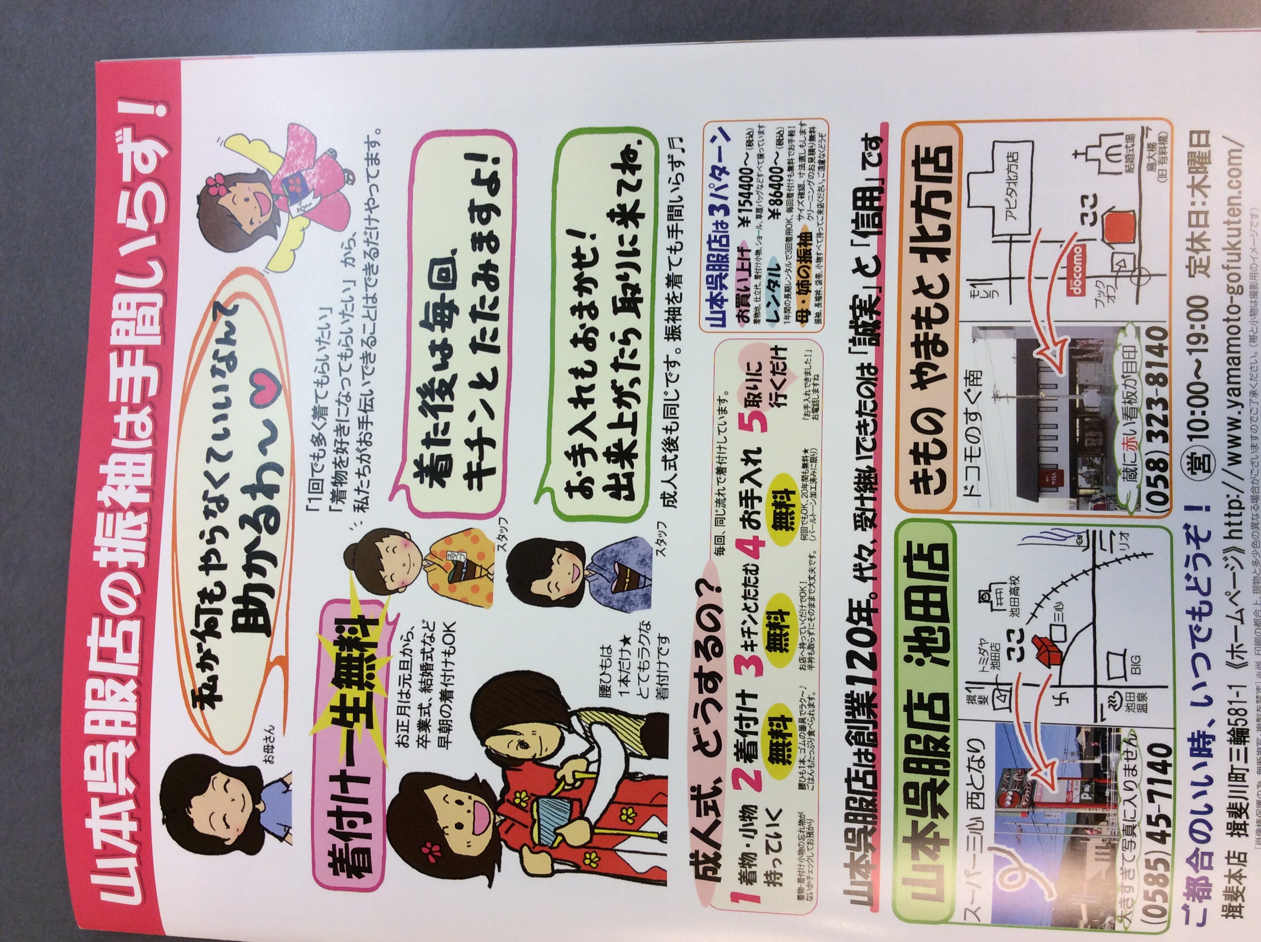 池田店、きものやまもと北方店へ見に来てくださいね。