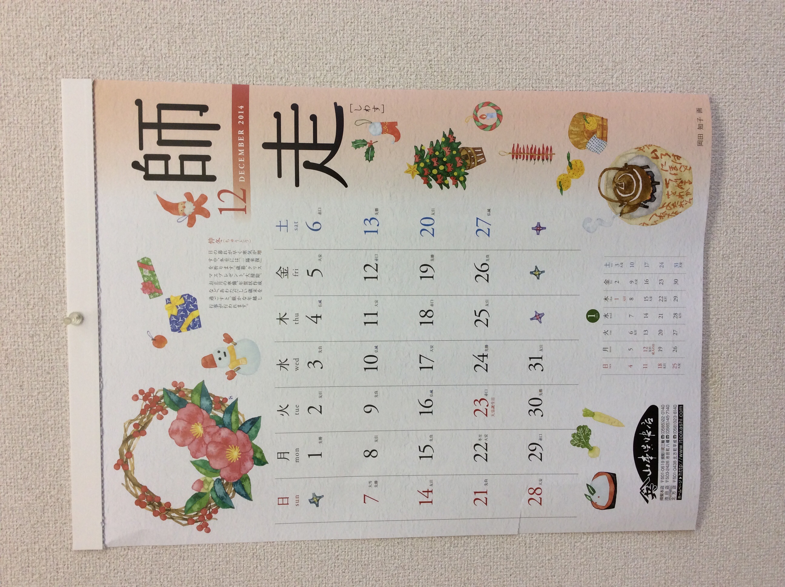 カレンダーもあと1枚になって 寂しくなりましたね。