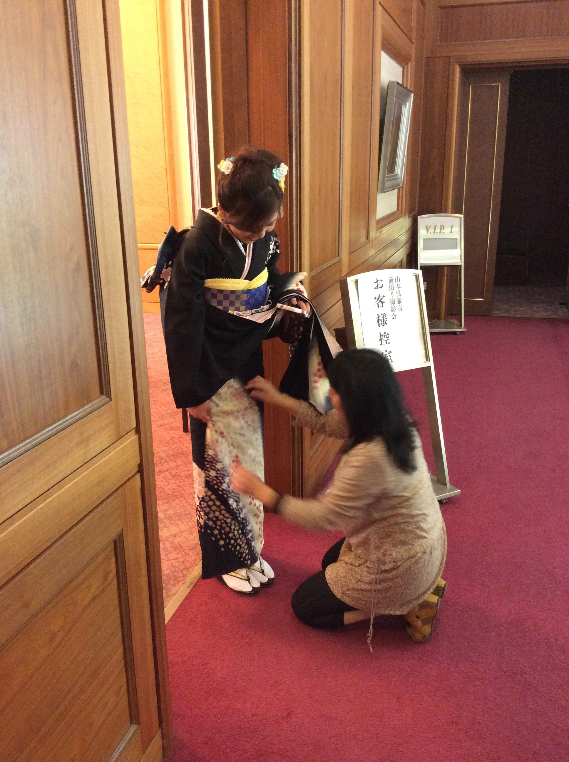 振袖、階段の上り下りは。