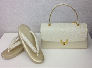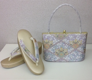 まず、着物に合わせて小物をコーディネートします。便利な作り帯のセット(帯・帯〆・箱せこ・草履・バック)もあります。作り帯ということで、お家でも簡単に着付けをすることができ、大変便利です☆