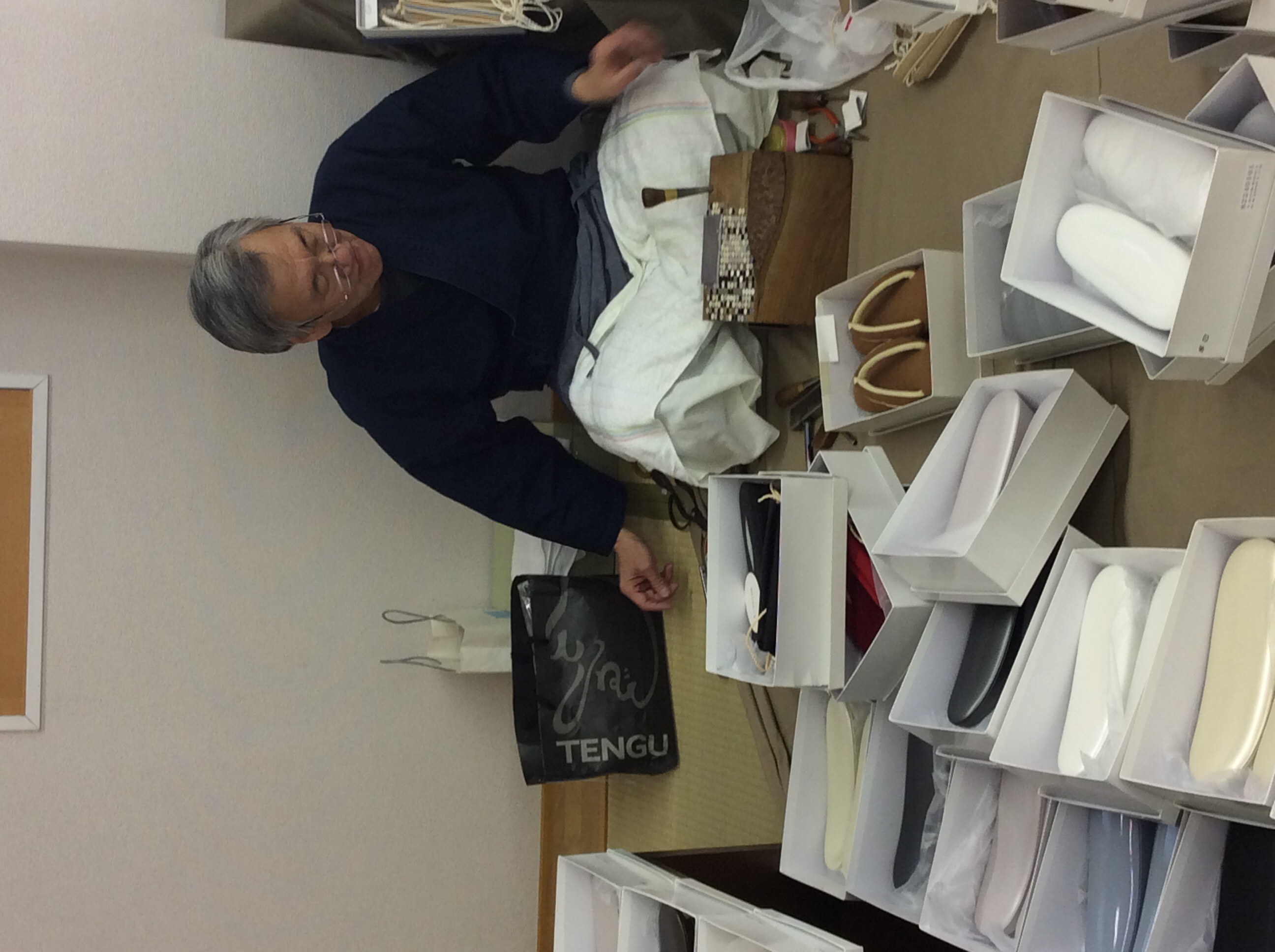 今日は 北方店へ 草履の鼻緒をすげる職人さん、