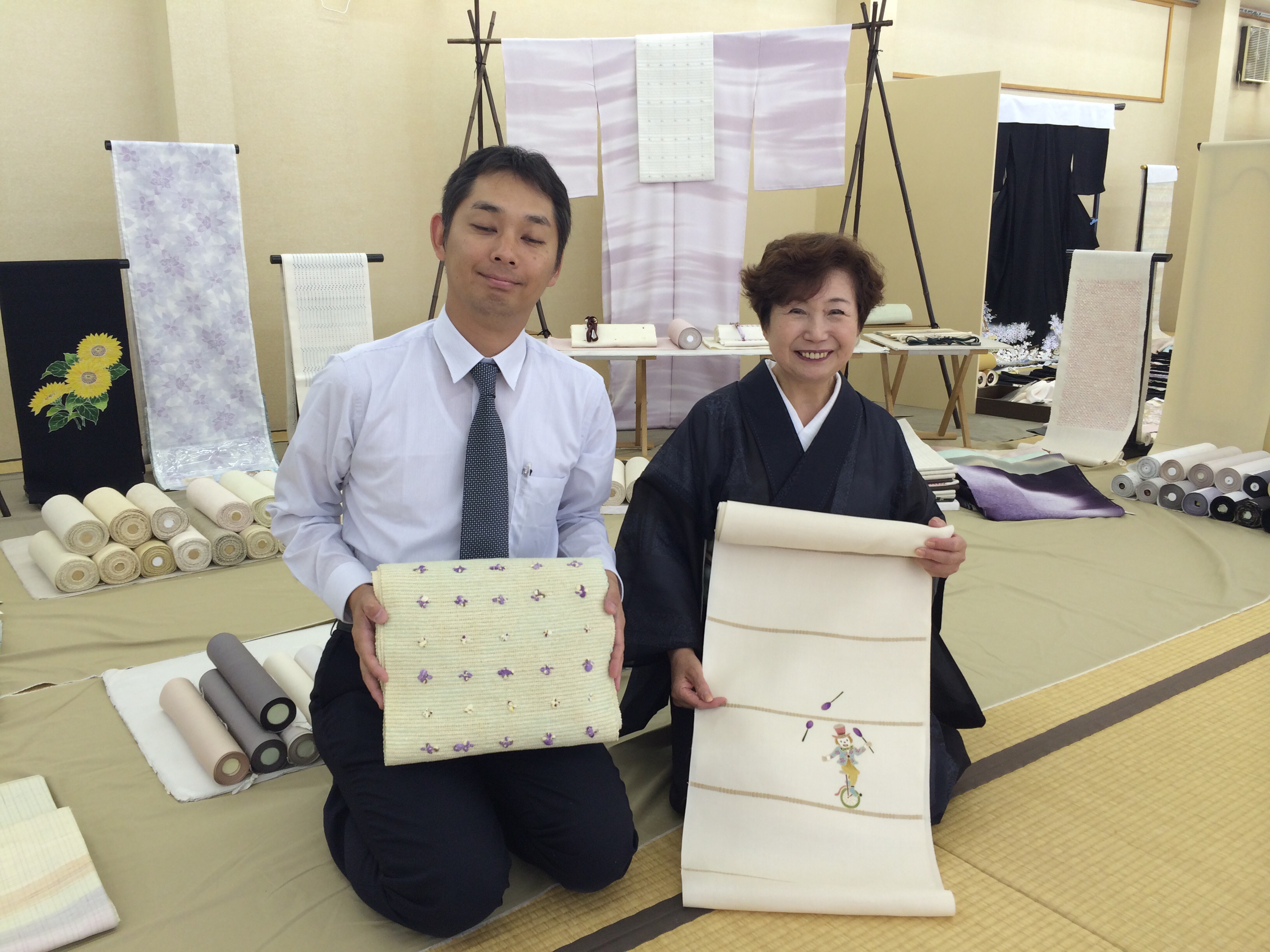 お客様に決めていただいた時には、反物の状態だったり、仮絵羽(仮縫い)の状態だったりします。