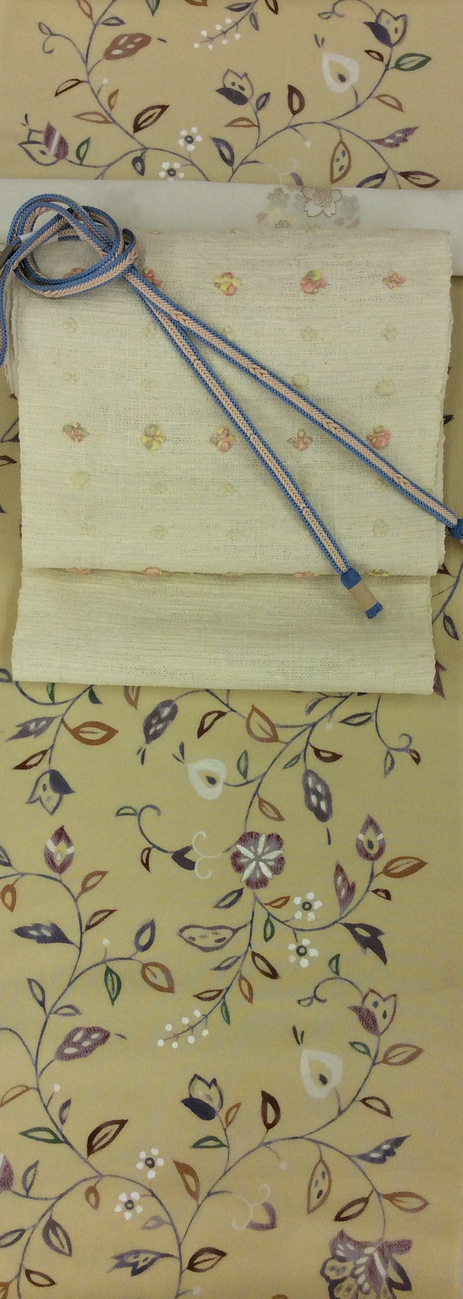 写真では見にくいですが 柄がピンクとクリーム色の真綿糸がかなり立体的にポツポツと出ていて