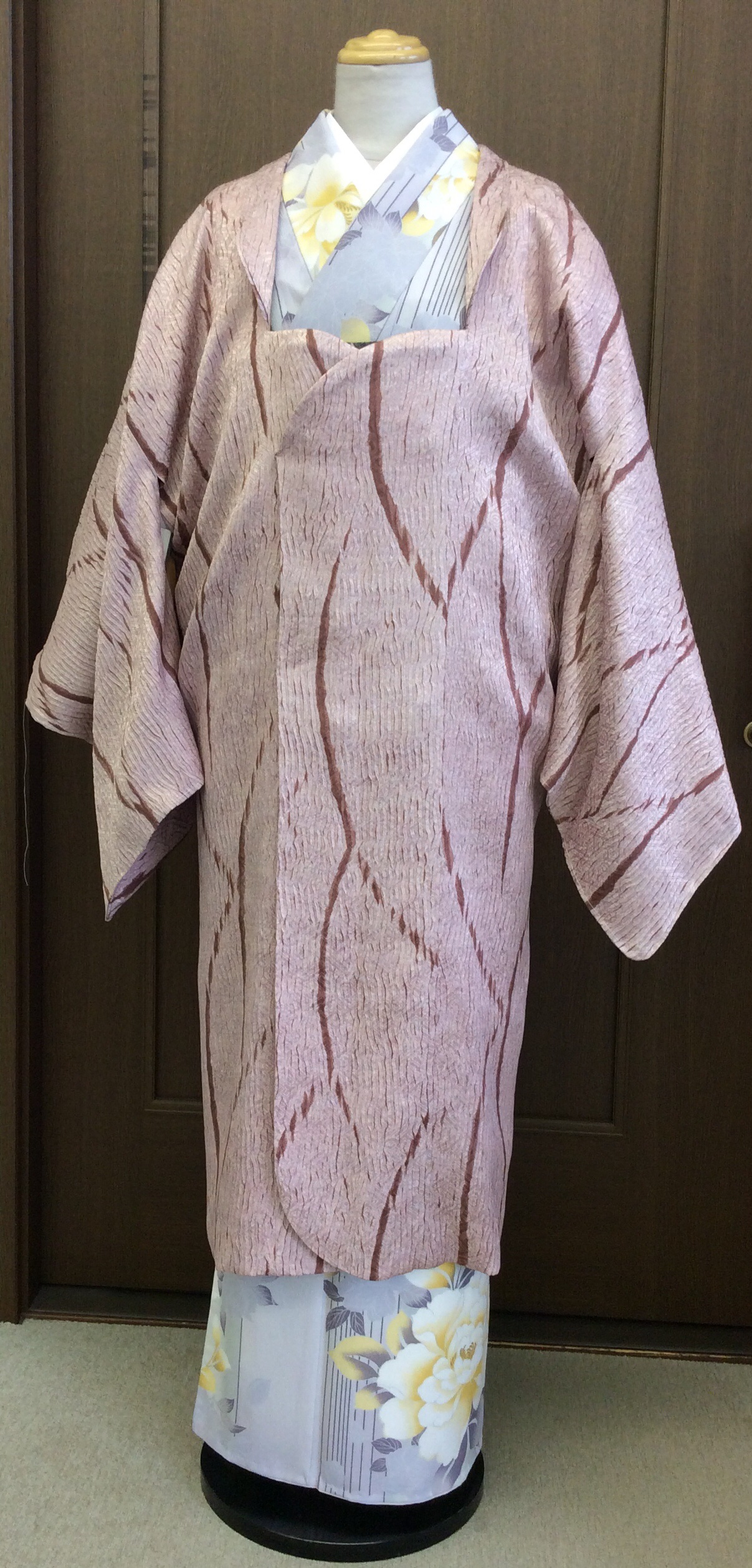 生地は藤娘きぬたやさんの変わり杢目の着尺です。