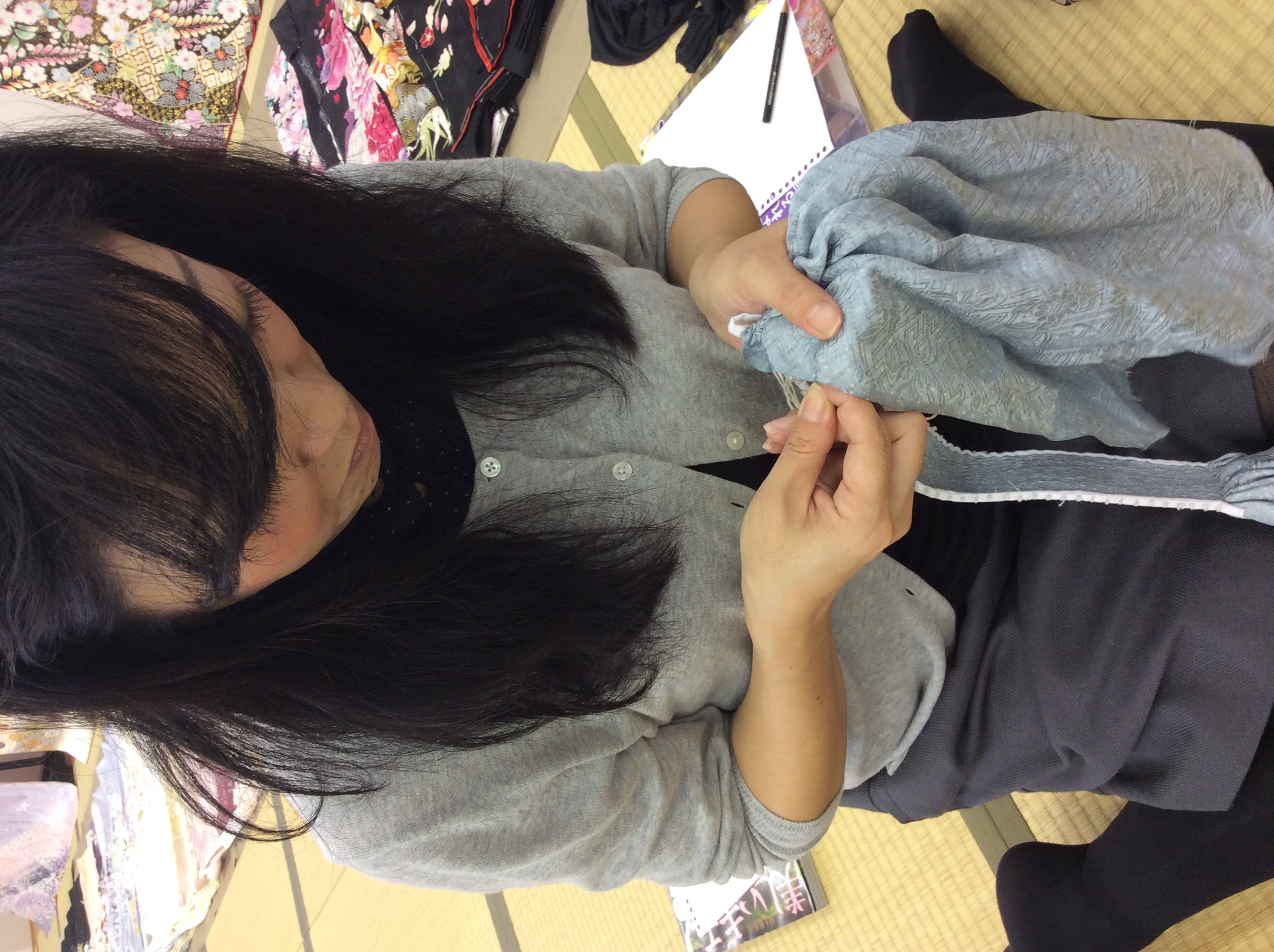 杢目絞りの 運針をやらせて貰いました。