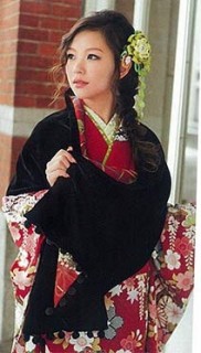 成人式には 白の水鳥のショールが一般的ですが、