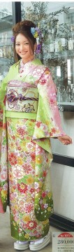 緑の振袖〜熨斗(のし)と花