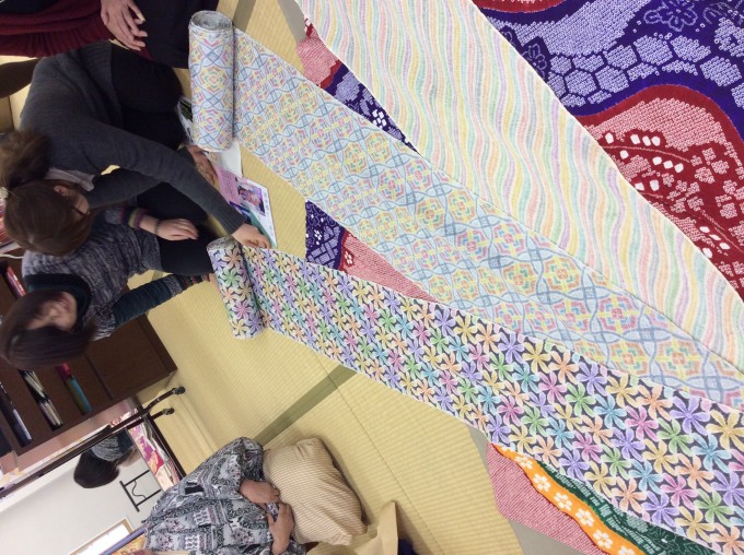 紬は湯のしをして、汚れ留めのパールトーン加工をして、柄合わせ裁断して、お仕立て。
