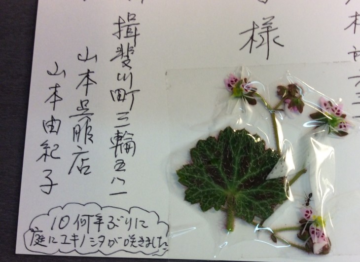 白いハガキの上ではユキノシタの白い花弁が見えなくなっちゃったなあ、