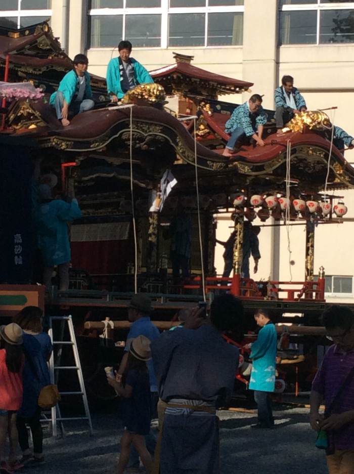 それぞれのやまに提灯を取り付ける作業が始まりました。