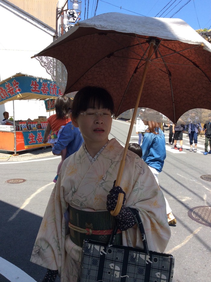 Oさまはお友達と着物を着て 日傘を挿して・・・
