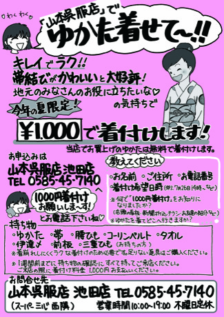 『大好評の浴衣1000円着付け』