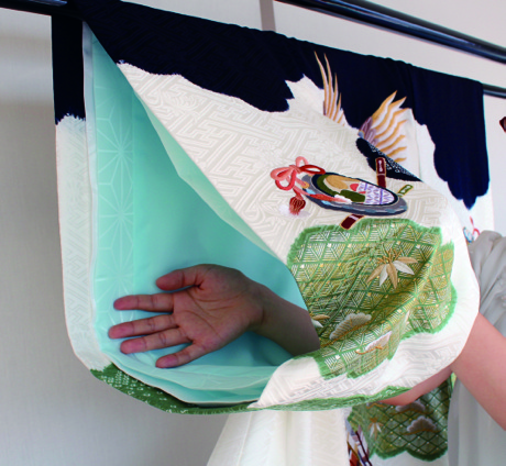 背中もお袖も全面に柄が多いので、つながりがとてもきれいです