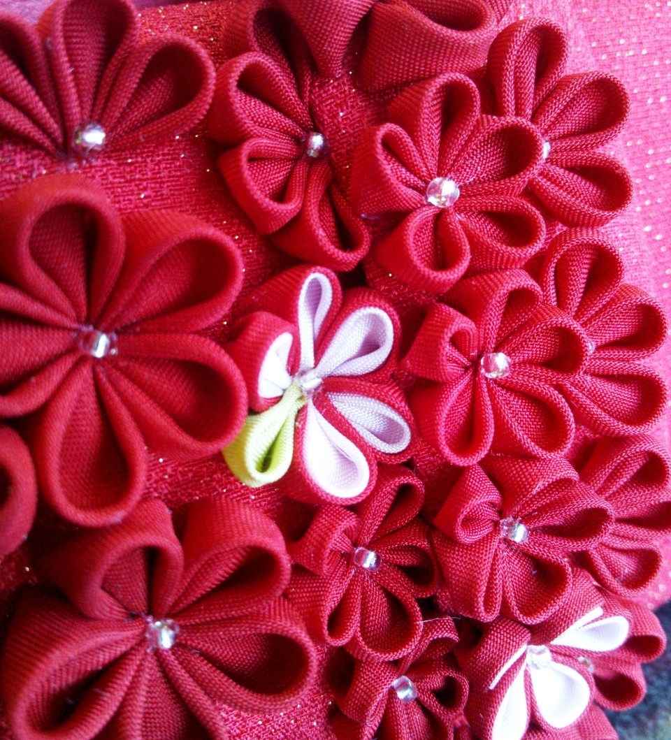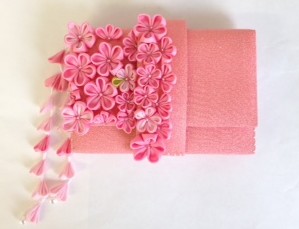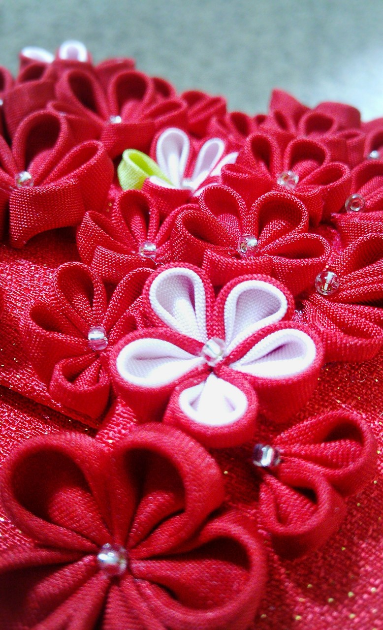 かわいいつまみ細工の花がちりばめられていて、子供っぽくない大人のかわいさを演出してくれます。