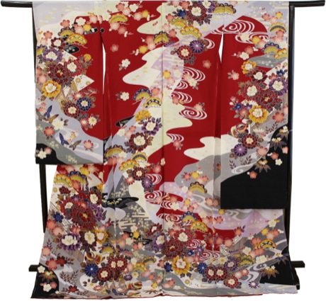 【赤色の振袖の中でもひときわ目を引く事、間違いなし◎】