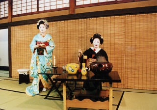 舞妓さんがお点前をしてくださるのを間近に見られるお茶席権付きの1等席をご用意します。