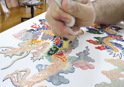 琉球紅型は、友禅などのように各工程の職人さんの分業制と違い、