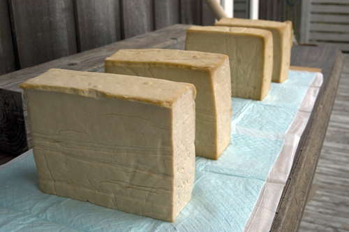 型を彫る時には、沖縄の島豆腐を乾燥させて作った「ルクジュー」というモノを下敷きにして彫ります。