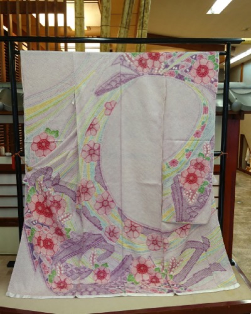 絞りだけで描く振袖と比べて、細かな柄が表現できます。