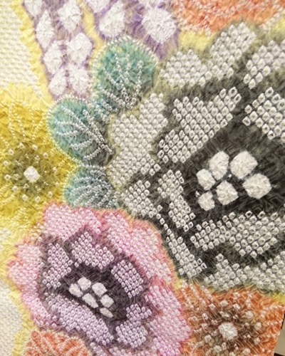 柄の部分だけでなく、真っ白に見える地の部分もすべて絞りが施されています。