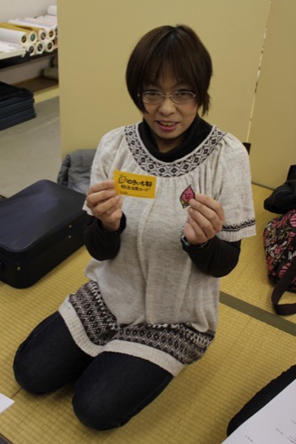 出席カードと、キャラクターのシールを持ってパチリ♪