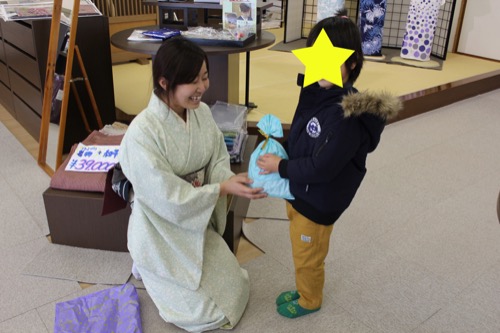 肌着の着方、長襦袢の着方、たたみ方を習いました。