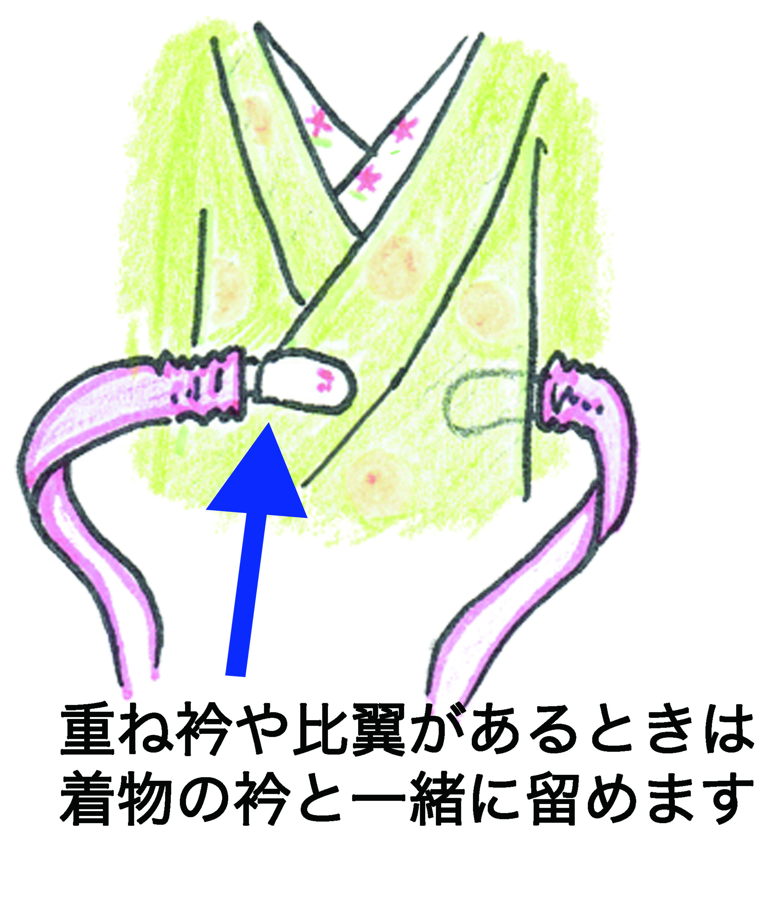 コーリン結びは着物の衿を重ね衿がキレイに出るようにして