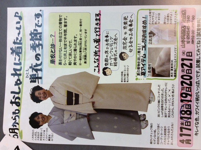 17日から池田店での着物祭りは 単衣の特集です 。