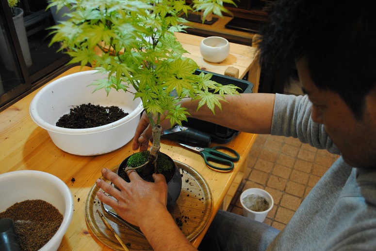 最高品質の赤玉土ベースのオリジナル配合土を使用して盆栽を制作しています。