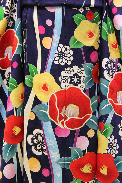 つばきも水玉模様も、ビビットな色使いで