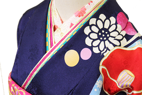 重ね衿もピンクを中心に、