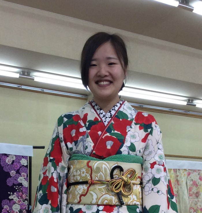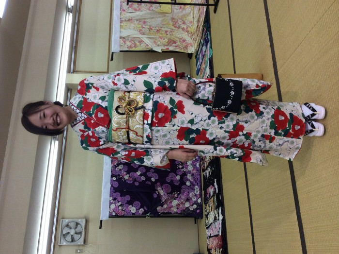 この椿の柄は  京都の老舗の染め屋さん  「  岡重  」さんの一番の人気柄  !