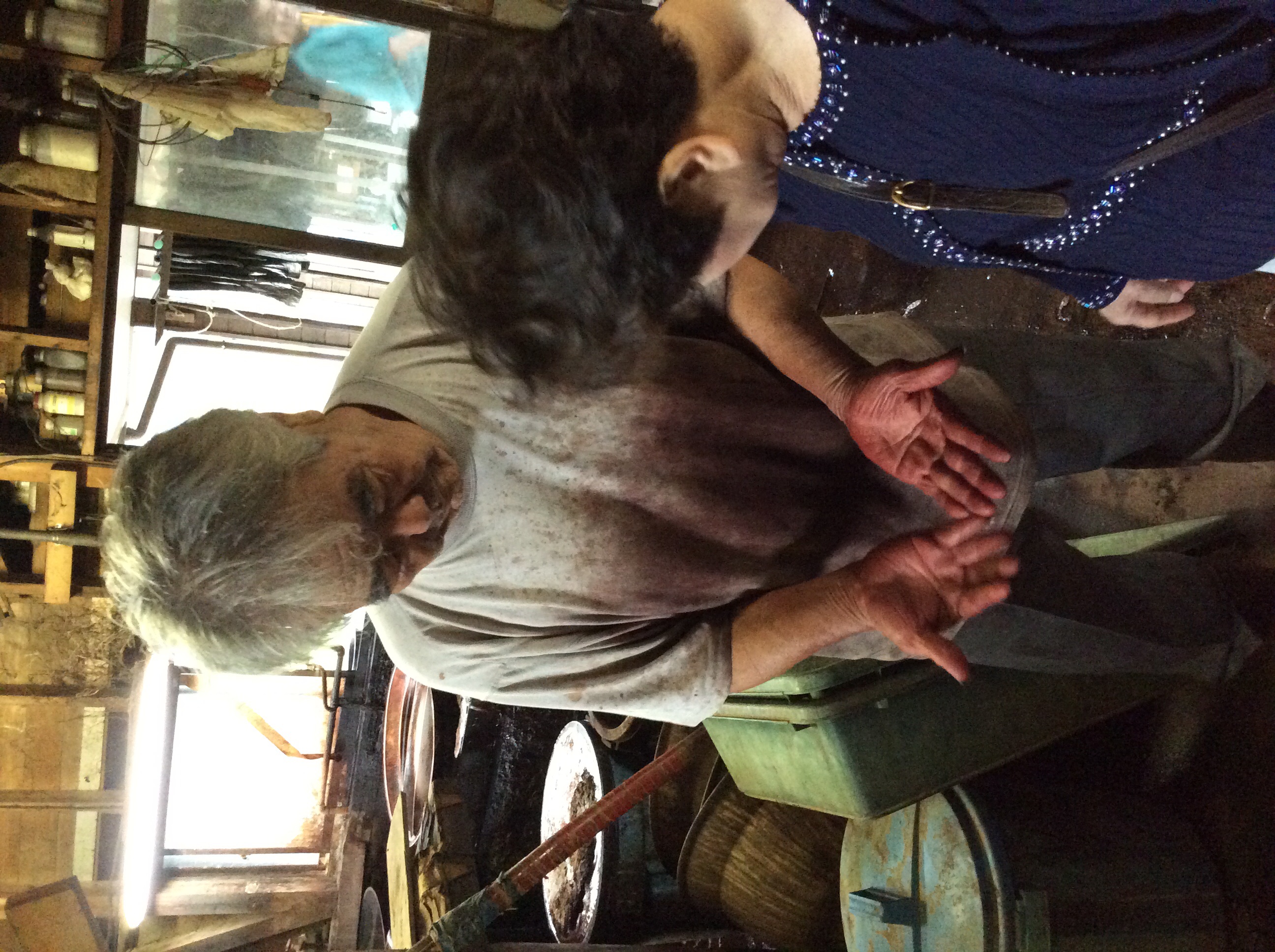 じゃあ、この後 泥染めしたら黒くなるんですね、 手も (笑)