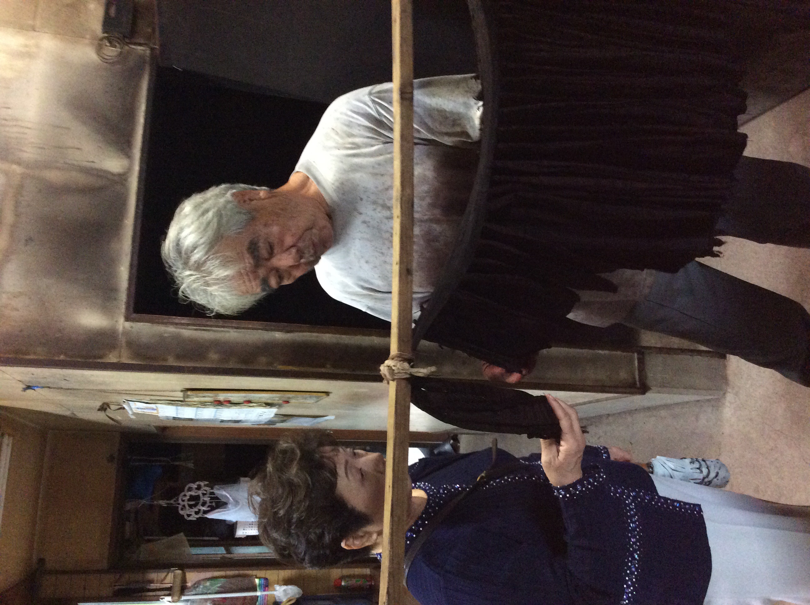 染めたムシロ (大島紬の糸の束を柄を付けるために綿糸で織ったもの)を