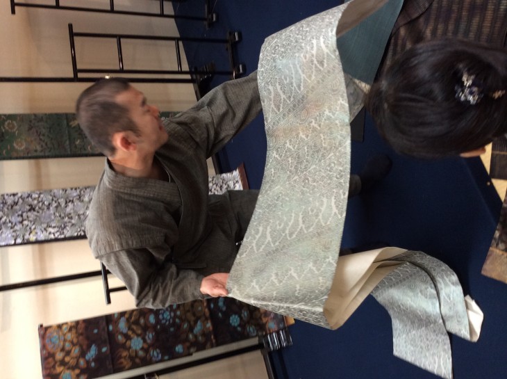 日本一老舗の機屋さん、紋屋井関さんの帯を手に取って見られますよ (*^_^*)