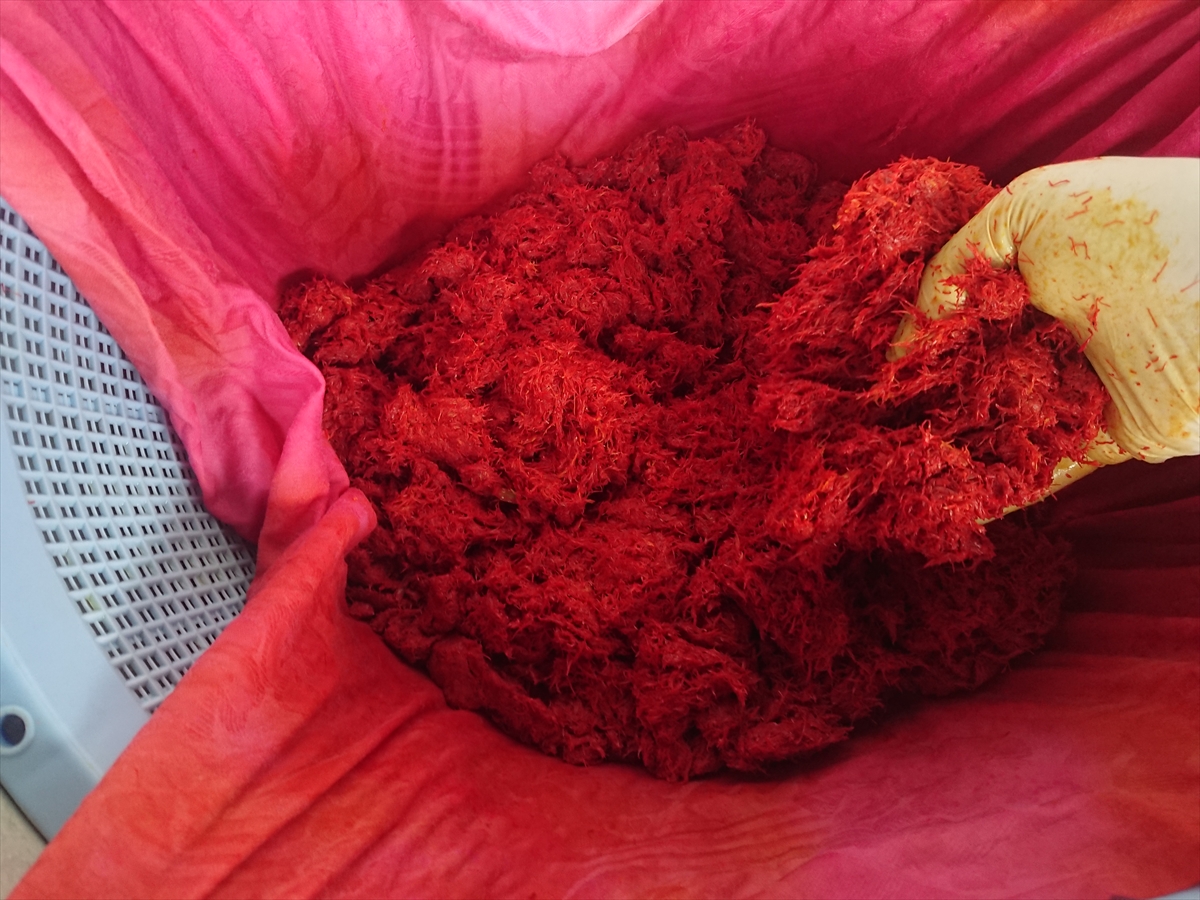 例えるなら、一度の染料の中に含まれる着色成分が、化学染料が100粒だとすれば、紅花の場合は0.5粒。目標とする濃さにするためには、200倍の染料を作り、何度も染めを繰り返す必要があります。また温度変化や湿度にも敏感で取り扱いがはるかに難しいのです。