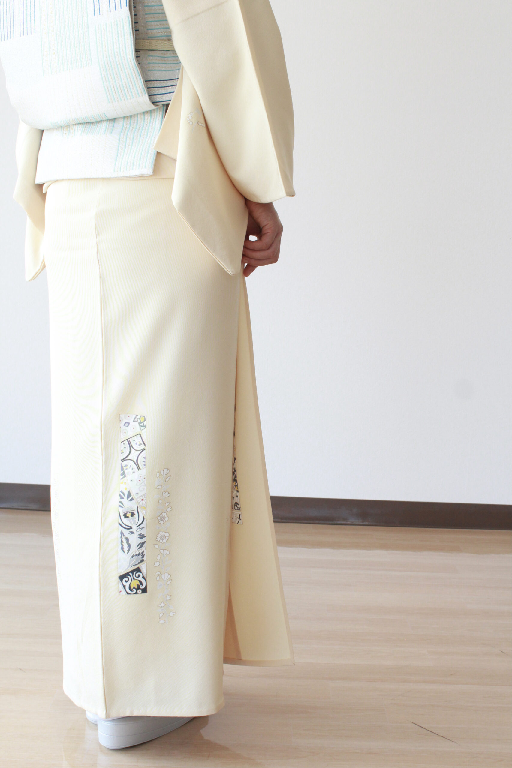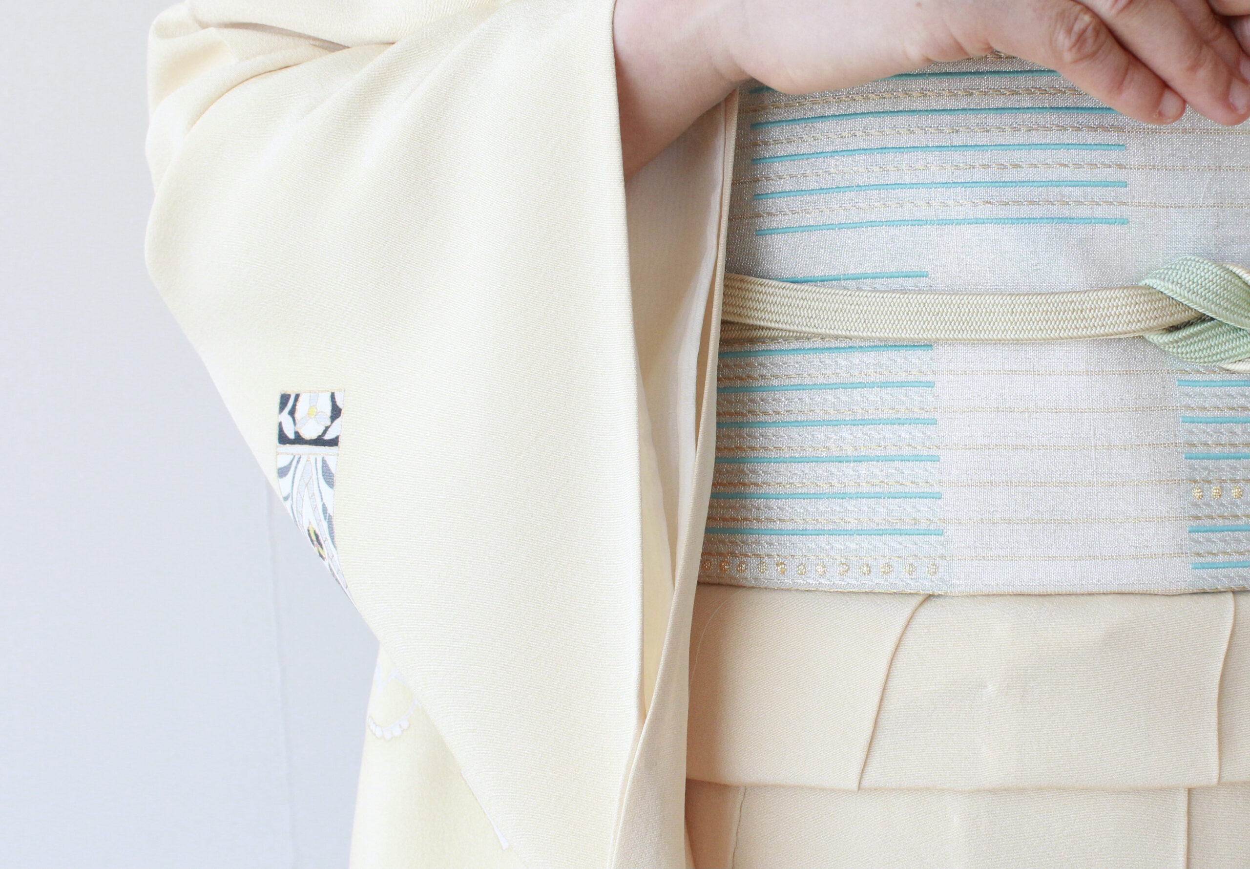 帯は一般的には袋帯を合わせます。夏(7~8月)に近い時期は夏の袋帯、冬に近づくにつれ、冬の袋帯をします。